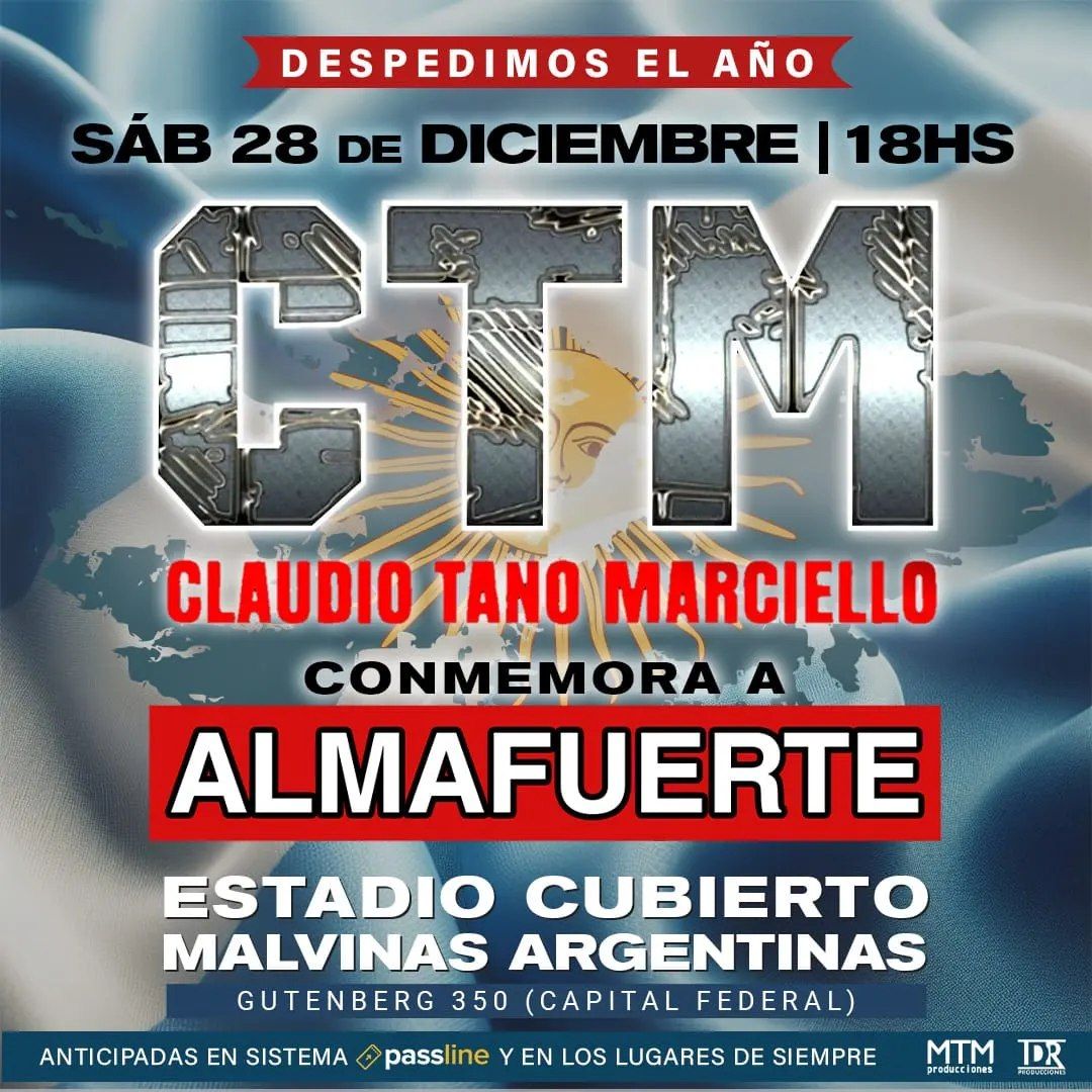 Luego de agotar dos fechas en el Teatro Flores, Claudio Tano Marciello despide el año conmemorando a Almafuerte en el estadio Malvinas Argentinas.