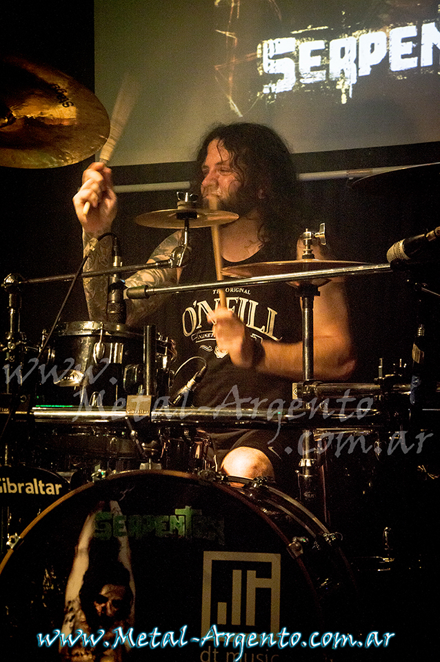 Llegó el momento que el Temo y compañía dieran presencia en el escenario para reventar el lugar con su poderoso Thrash Metal. Arrancaron con un tridente ultra poderoso «Privación Ilegítima de la Libertad», «Enfermo Poder» y «Controlando la Nación». El poder escénico que tiene Serpentor no lo tiene cualquier banda, cinco tipos firmes en el escenario que en cada tema te hacen un K.O. Sin embargo en la noche del domingo faltó pogo pero no por eso agite y euforia. «Preso de la Confusión», «Mirar sin ver» y «Vomitando Odio» fue otra seguidilla clave de la noche, que casi no tuve pausas entre tema y tema. Tuvimos el honor de escuchar «Tormenta de Muerte» perteneciente al próximo disco de estudio de la banda que al parecer llevara la misma línea que