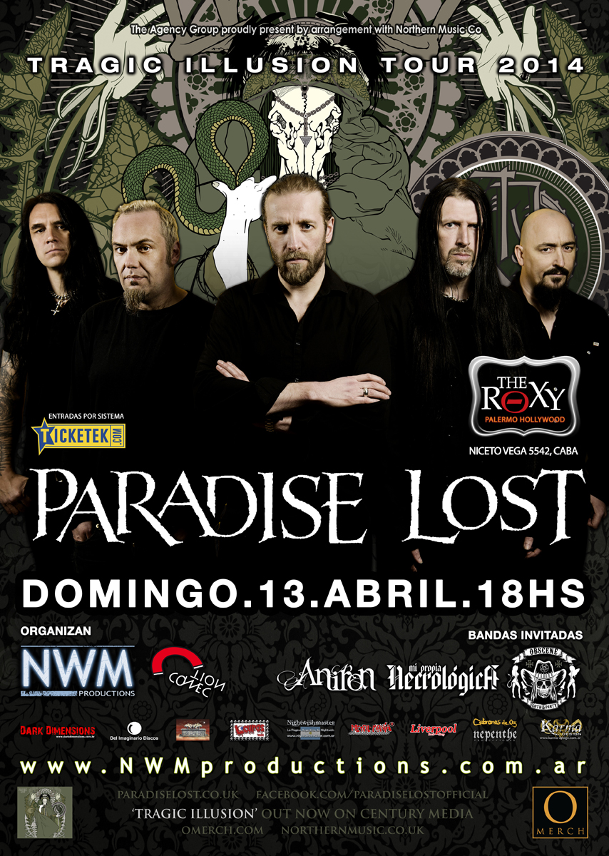 Nuevamente los ingleses lograron violentar al público argentina el domingo pasado en el Roxy Live, que contó con una previa de tres bandas argentinas. Aniron que se acerca más al metal sinfónico que al sonido de gothic/doom de Paradise Lost, sin embargo su repertorio fue contundente dejando de lado la impaciencia de los presentes. En segundo lugar salió Mi Propia Necrologia afianzada al black netal noruego, al estilo Burzum, con gran nivel musical pero por lo menos en esta ocasión con fallas en lo vocal. Sin embargo siendo tan solo dos músicos en escena despertaron un importante interés gracias a su puesta de gran distorsión, maquillaje y videos satánicos de fondo. Finalmente la última banda fue Obscene imponiendo a fuerza su gothic rock que no contó con un buen sonido teniendo problemas en los solos que mostró lo mejor de su repertorio con un cover de nada más ni nada menos que de Blondie «Call me«.