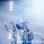Carajo se presentó el sábado 14 de Junio en el renovado Luna Park con el estadio repleto y arrasó como una aplanadora festejando los diez años de “Atrapasueños” y continuando con la presentación de su último disco “Frente a Frente”. Con un retraso de media hora y un público que estaba mas que impaciente, las siluetas de Corvata, Tery y Andy se translucía a través del telón blanco con una intro de batería con algunos toques de electrónica. Cae el telón dando pie a la primera parte del show donde tocaron algunos temas de su último disco, arrancando con “Trágico mundo Caído” y el cántico del publico “ohh ohh ohh” la guitarra de Tery y el bajo de Corvata dando ese clima de melancolía y los dejos de los platillos de Andy daban inicio a la revolución carajera. Siguiendo con el disco uno de Frente a Frente “Drama”, “La venganza de los perdedores” acompañado del mosh que recién empezaba y parecía no tener fin irradiada por la energía que Carajo intercambia con su público constantemente. Cerrando este primer disco con “Shock” y “A espaldas del bien” para continuar con el segundo tema de Frente a Frente con “Tracción a la sangre” de fondo una gigantografía con la portada del disco, a los laterales dos pantallas gigantes que mostraban el show. Carajo ya estaba cómodo en un escenario que era más que grande, permitiendo que Tery se desplace mucho más y suba a la tarima de la batería de Andy donde tenía encuentros fortuitos con Corvex. Bajando un poco la adrenalina pasamos a “Para vos” con los exorbitantes gritos de guerra de Corvata, “Sobrevivir”, “Andante” cerrando con “Promesas”.