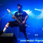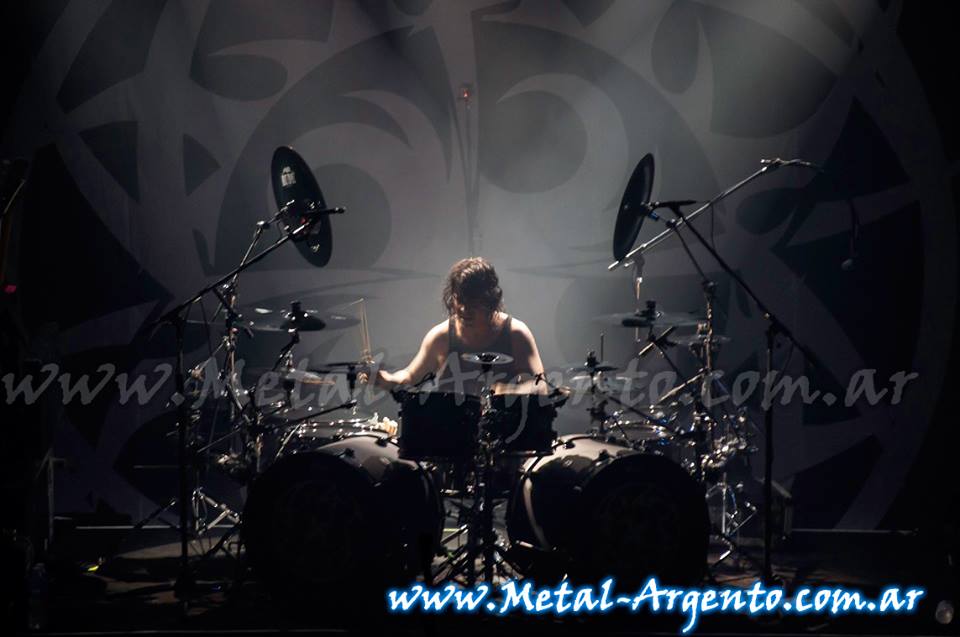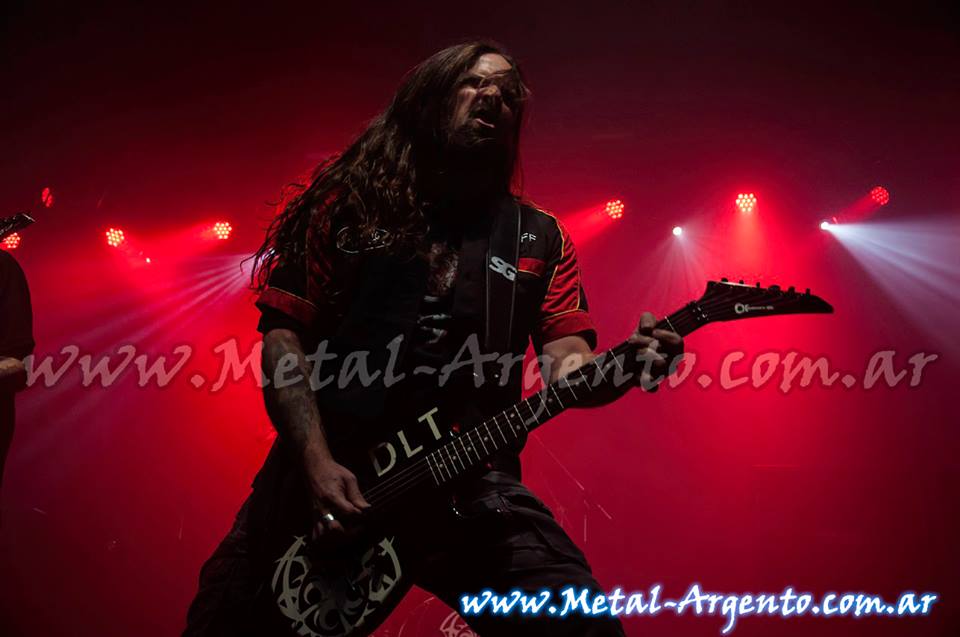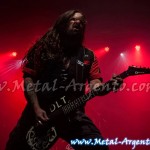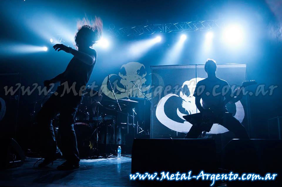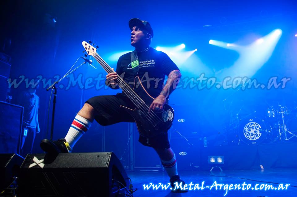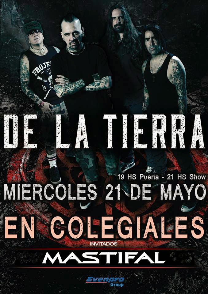 Si tuviera que definir a De La Tierra, sería denominarlos como un proyecto ambicioso. El origen musical de cada uno de ellos, aunque siempre ligados al metal en mayor o menor medida, hace un cóctel exquisito a la hora del vivo. La noche comenzó con Mastifal con gran poder fuerte y violento. Lamentablemente solo pude presenciar los últimos tres temas: «Tiempos Violentos», «Bionecrosis» y «Que Sea Rock». Las luces se apagaron a las 21.30 horas mientras se habría telón para que De La Tierra, el supergrupo conformado por Sr. Flavio Cianciarullo, Andreass Kisser, Andrés Giménez y Alex González dieran el salto principal a un escenario argentino. Acompañados durante la salida con la intro del disco, los músicos se acomodaron de cara al público para dar comienzo al show con «Somos Uno». Desde el primer minuto el sonido fue demoledor, una patada directamente al pecho aunque por momentos la voz de Andrés Giménez fue opacada. Sin descanso la lista continuó con su primer corte de difusión «Maldita Historia» en donde se desató la primera ronda de la noche. Con tanta energía manifestada durante los primeros doce minutos lo natural sería hacer una pausa, sin embargo «San Asesino», segundo corte promocional, sonó para completar el pogo. Teniendo ya en cuenta que el sonido fue increíble, voy hacer hincapié en la parte visual del show, que por cierto no se quedó atrás. Una batería llena de platillos y cuerpos en el centro, varios equipos a la vista que detrás eran un placard de instrumentos más un telón con el nombre y logo de la banda de fondo. Todo acompañado de un excelente manejo de luces. Los guitarristas desfilaron dos guitarras cada uno, nada de sobrepasarse y caer en la ostentación, como lamentablemente varios músicos sufren. La estética fue pareja: ropa negra obvia como cualquier banda de metal, indumentaria deportiva por parte de Flavio, y camuflados verdes a cargo de Giménez. Casaca roja y negra por Andreass mientras que Alex llevaba una tradicional musculosa negra.