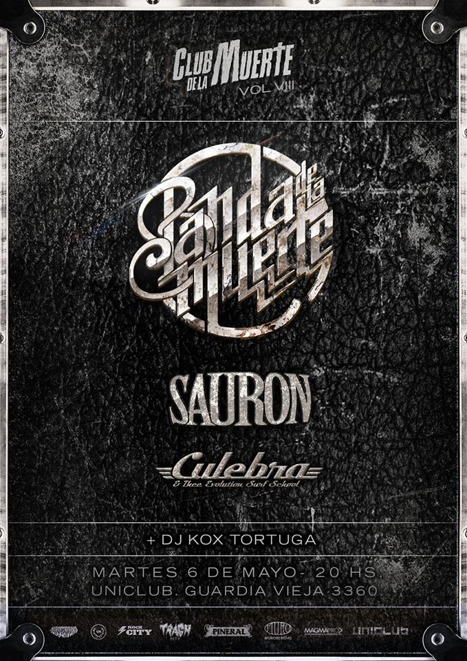 El martes por la noche me acerque al Abasto porteño, más precisamente a Uniclub, para presenciar el llamado Club de la muerte. Llegado el momento Culebra and Thee Evolution Surf School comenzó su set alrededor de las 20.30hs. Como bien su nombre da a entender la banda se destaca por hacer surf rock, pero eso no es todo sino que es instrumental. Un sonido simpático para ambientar el comienzo de la noche en donde uno podría imaginarse, gracias a la buena climatización de la banda, estar sobre una tabla en el caribe. El set se basó en la presentación de su disco de estudio Surf Revellution. Más allá de que no había mucha variación, el tema a destacar fue «Olas salvajes» por el solo a cargo de Culebra.