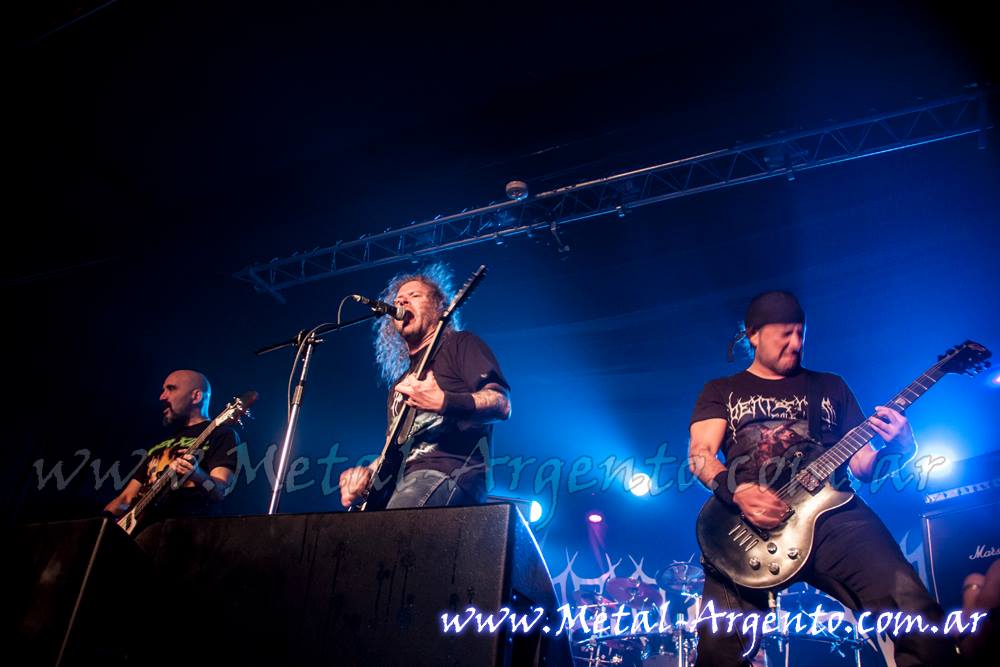 A las 20:45 comenzó Carneross, banda que siempre garantiza no dejar quieto a cualquiera que le corra el metal por las venas, sin bajar las revoluciones nunca a lo largo de cuarenta minutos de show en el que escupieron su thrash brutal, más cerca del Slayer más extremo que del thrash más clásico. “Religión es muerte” e “Inyector del odio” fueron dos de sus clásicos correspondientes a su álbum debut Mass Violencia (2012) con los que comenzó el show, seguido de “Muerte violenta” del demo que lleva su nombre del 2009, y una canción nueva que denota las influencias punk del cuarteto, integrado por Martin Echenique (bajo y voz), Alejandro Conde (batería), Gastón González y Federico Conde (guitarras). Sonaron también “Dios de la guerra” y “Caminarás entre las sombras” del Muerte Violenta, además “Producto del miedo”, “Letal promesa de venganza” y “Culto a la destrucción” del larga duración, resultando de esta forma otro demoledor show de la que para mí es una de las bandas más destacadas del under local.