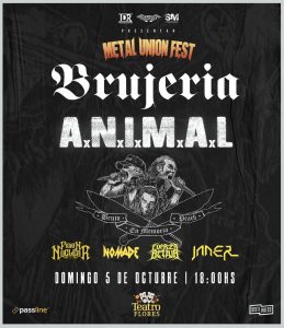 Brujeria llega una vez más a la Argentina para rendirle tributo a sus ex vocalistas Juan Brujo y Pinche Peach. También formarán parte del evento las bandas A.N.I.M.A.L., Nómada, Parabellum, Fuerza Activa e Inner. Todo esto bajo el marco del Metal Union Festl 5 de octubre de 2025 en el Teatro Flores de Buenos Aires.