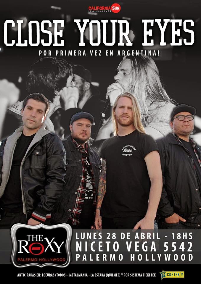 Luego de que en el 2012 Close Your Eyes y We Came As Romans hayan tenido que ser dados de baja de la gira que iban a realizar junto a Undetoath y Protest The Hero por Sudamérica, finalmente la banda de hardcore melódico proveniente de Texas iba a tener su chance en nuestro país. Desde ya el panorama no era muy alentador. Close Your Eyes no es una banda muy popular en Argentina y hacer el show un lunes puede jugar en contra en muchos aspectos. Llegando al Roxy me encontré con muy pocas personas en la puerta y adentro había aún menos almas esperando por el inicio de la primera banda soporte. Les aseguro que no llegábamos a veinte personas. Eso no impidió que los chicos de Baires Reach, banda de hard rock de Avellaneda, den una presentación deslumbrante para los pocos afortunados que estaban dentro del recinto. Es que bajo la guía de un baterista y un bajista muy prolijos y con mucha onda, su guitarrista y cantante dio una presentación que, haciéndole honor a la remera de WhiteSnake que lucía, harían que el propio David Coverdale se sintiera orgulloso de su legado. Con sólo decirles que en mitad del show los mismos Close Your Eyes entraron por el medio del Roxy cargando sus instrumentos y Sam Robinson (el nuevo cantante de la banda), una vez que dejó sus cosas detrás el escenario, bajó para sumarse al público y terminar de ver con una sonrisa la aplanadora que era este trío.