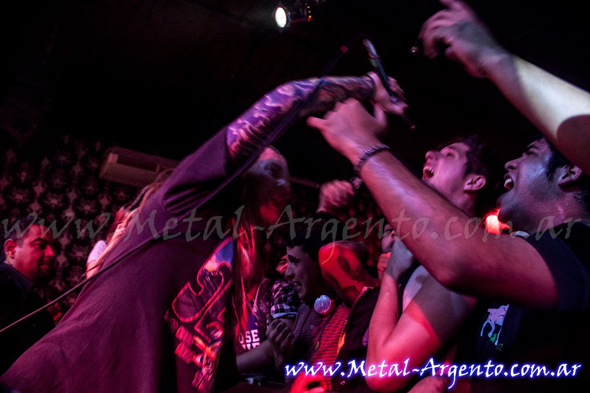 Luego de realizar solamente dos temas propios y algunos covers (incluyendo una poderosa versión de “Beat It” del rey del pop) los chicos de Baires Reach se fueron con aplausos bien merecidos para darle lugar a NYA, una banda de rock experimental que poco tenía que ver con la propuesta de la noche y que a pesar de haber realizado algunas canciones con ideas verdaderamente interesantes, por momentos se los notaba a destiempo, y a eso sumarle que el sonido era considerablemente peor del que había tenido la banda anterior, haciendo de este show algo muy poco disfrutado por los presentes. Cuando quise darme cuenta, la cantidad de gente que había dentro del Roxy se había multiplicado. El lugar seguía estando medio vacío, pero habiendo visto el panorama inicial fue alentador ver muchísima más cantidad de gente esperando a la primera presentación de Close Your Eyes en Argentina, y cuando las luces se apagaron una vez más fue sólo el comienzo. El show comenzó con “Wake Up!” (de “We Will Overcome”, su primer álbum), seguidas de “Digging Graves” y “Sleeping Giant” (primera canción que hicieron de “Line in the Sand”, su último álbum de estudio, el primero con Sam a cargo del micrófono). La gente disfrutaba, cantaba y pogueaban pegados a la valla en donde intentaban llegar a sus ídolos para cantar alguna parte junto a Sam o simplemente “chocar puños”.