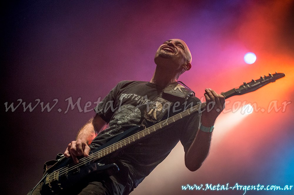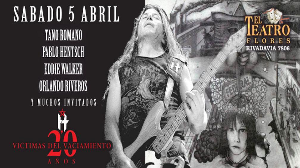 El Tano Romano volvió a Flores con su banda para festejar los veinte años del disco Víctimas del vaciamiento de Hermética, como lo supo hacer con el segundo trabajo de la H. Tal como en aquella ocasión, muchos músicos fueron invitados para que adornen este festejo y sea una verdadera fiesta de metal nacional. Más allá de las críticas y las opiniones encontradas sobre si está bien o mal lo que hace Antonio Romano con este tipo de festejos, creo que es un buen momento para la reunión de varios músicos del palo y que la gente pueda disfrutar. Debido a las inclemencias climáticas del día llegué un poco/bastante tarde y no pude ver los primeros dos temas de la noche que fueron “Soy de la esquina” y “Otro día para ser”. La idea era repasar el disco en forma completa y en orden, y luego ir despachándose con canciones de sus anteriores bandas y de su actual Malón. Ergo, la seguidilla estaba conformada por “Traición”, “Olvídalo y volverá por más” y “Hospitalarias realidades” mientras que la gente seguía llegando y la presente cantaba cada una de las líneas de cada tema, dando su cuota de aguante para conformar una verdadera fiesta. La banda está conformada además por el inquieto y talentoso Eddie Walker en el bajo, Pablo Hentsch en batería y Orlando Riveros en la voz.