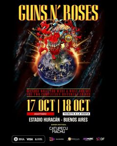 La gira por Latinoamérica incluirá fechas en países como Argentina, Brasil, Chile, Perú, Colombia y México, entre otros. Los shows prometen un recorrido por sus grandes clásicos como “Sweet Child O’ Mine”, “Welcome to the Jungle” y “November Rain” junto con una potente puesta en escena y sorpresas preparadas especialmente para esta etapa latinoamericana. Los shows prometen revivir los himnos que marcaron generaciones desde Appetite for Destruction hasta Use Your Illusion.