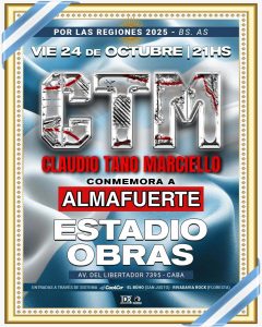 Así comienza el poema en verso libre y quizás eso es lo que lo haga más atractivo. El concierto de Claudio Tano Marciello , y la comitiva que lo acompaña en CTM, en conmemoración a Almafuerte el pasado viernes fue un ejemplo de la huella que dejó Ricardo Iorio en el colectivo metalero, y principalmente, en el italiano mismo. Las canciones de Almafuerte volvieron a sonar una vez más en el mítico Estadio Obras y que sabe uno si será la última vez o la primera de shows esporádicos. Lo cierto es que ante cerca de seis mil almas, tempranamente versiones caseras y acústicas del cancionero popular de Ricardo fueron sonando en pantalla gigante.