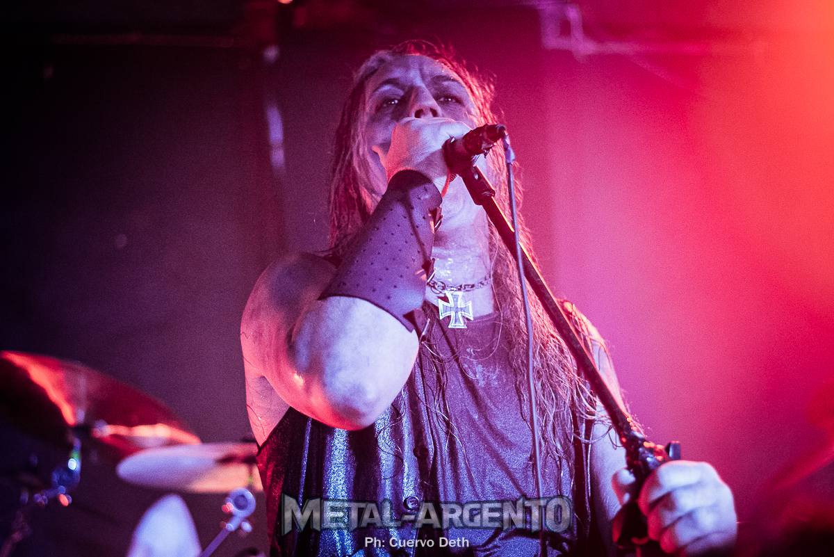 Volviendo a lo que se llevó a cabo el sábado por la noche, y con los primeros en bajar a lo que mas adelante se convertiría en el mismísimo infierno, Psicosfera daba inicio a su presentación. La banda da una contundente descarga de un black metal experimental, mas ambiental que violento. Martin Madariaga, con la cara completamente pintada de negro y una cruz del mismo color sobre su abdomen, interpreta gesticular y corporalmente la música que realiza la banda. El resultado es un trance, un show con tintes de ritual maligno, hay maldad y sufrimiento en cada grito y cada acorde.
