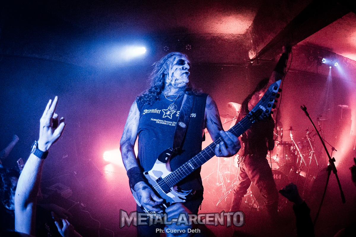 Los minutos pasaban y el sótano se iba llenando de gente. Luces tenues y pequeñas descargas de humo, iban aclimatando el recinto. Lo único que faltaba para convertirlo en un infierno, era sin dudas la presencia explosiva e imponente de los suecos Marduk. Dicho y hecho, pasada las nueve de la noche, se los vio bajar a los músicos y sumergirse entre la gente para llegar al escenario. El infierno era un hecho.