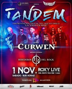 Y cómo no ilusionarse con esta nueva criatura que ha gestado esta legendaria banda nacional, que muestra en sus integrantes el paso del tiempo, pero ahí se mantienen erguidos como un roble y con el hard rock, el neoclásico y el metal que recorre por sus venas. Bueno ¿De qué estamos hablando? Tándem presentó su nuevo álbum llamado La Vida es Hoy (2025) el pasado 1 de noviembre en The Roxy Live, y junto a ellos estuvieron Curwen y Herederos del Rock.
