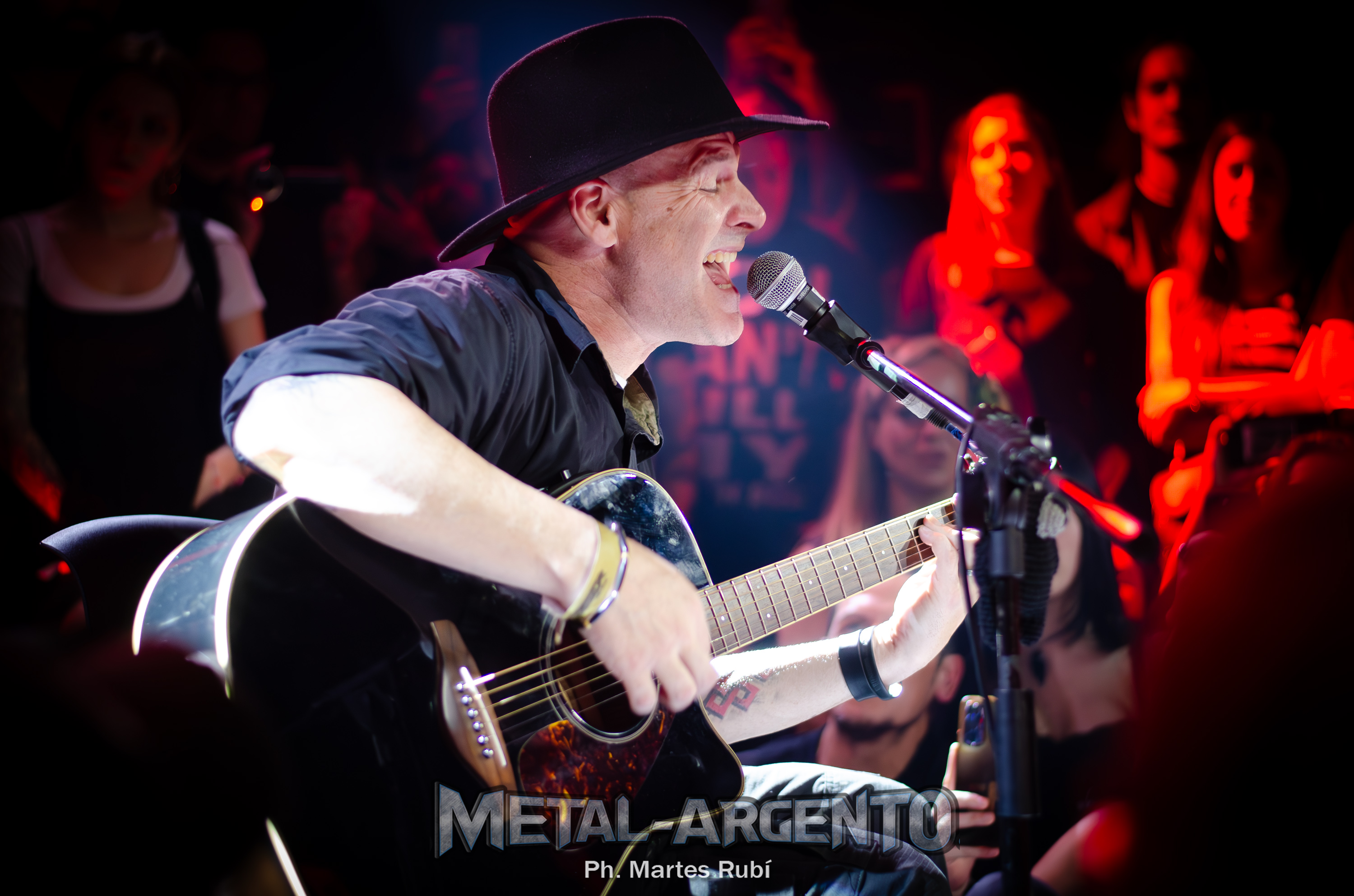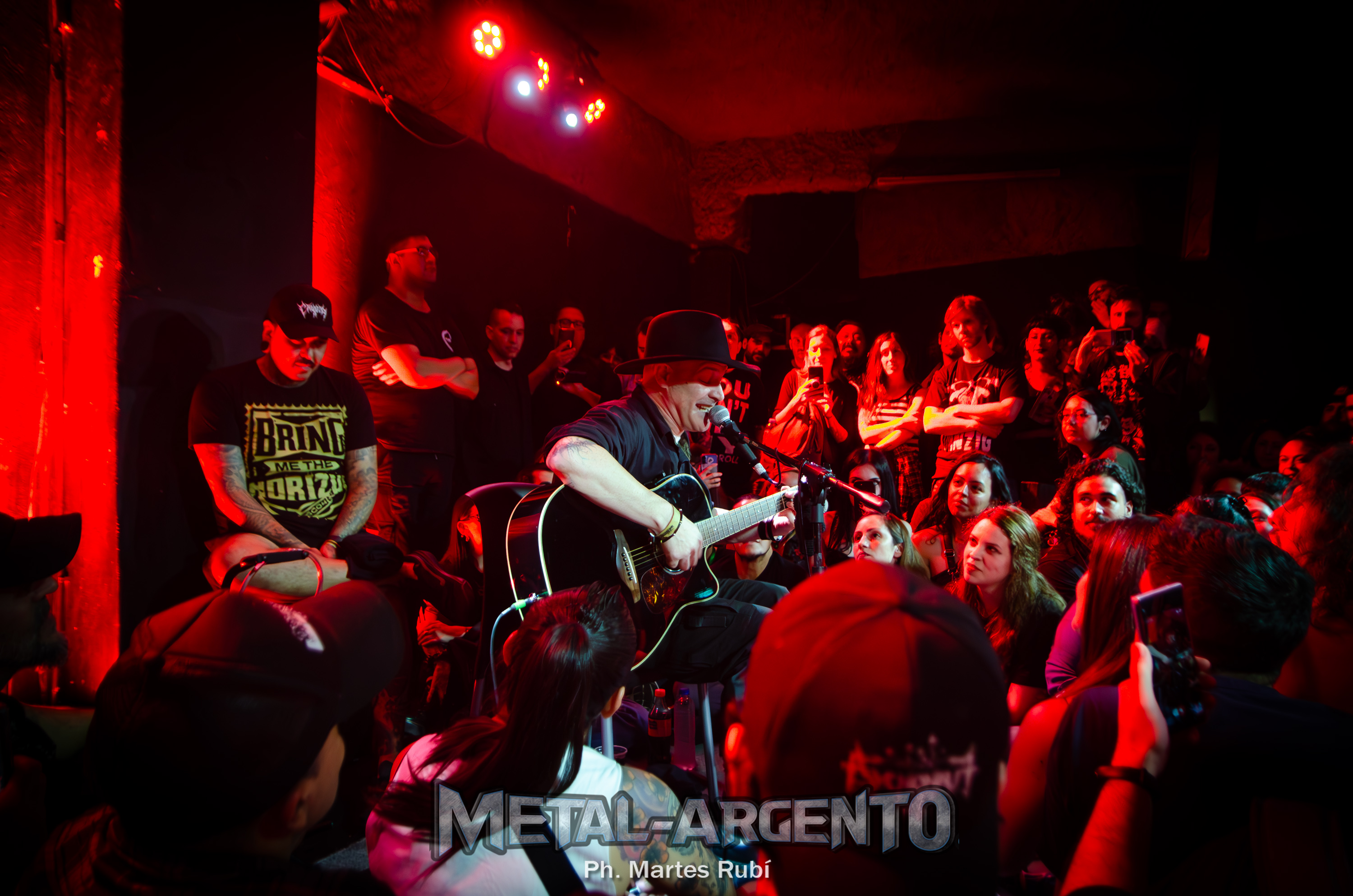 Acomodando una silla, un pie de micrófono y demás detalles a eso de las 21:10 hs vimos bajar las escaleras a un tipo con sombrero negro. Parecía un cowboy, pero era Michale Graves quien saludo, tomo asiento y empezó a interpretar las canciones. Si bien había una lista de temas que seguir, Graves se guio por lo que sintió en el momento, inició con “Vagabond” , “I Believe” y “Blackbird” y siguió con algunos clásicos de clásicos cómo “Shining” y “Descending Angel”.