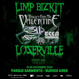“Bienvenido a la jungla, punk, mirá a tu alrededor. Es Limp Bizkit…”. Este fragmento de «My Generation» (2000) captura la energía caótica e intensa de los shows de Limp Bizkit en el LOSERVILLE TOUR, el proyecto del frontman Fred Durst que recorrió Estados Unidos y Europa en los últimos meses. La gira —con la participación de Bullet For My Valentine, 311, Ecca Vandal, Slay Squad y Riff Raff— llega a Argentina el 16 de diciembre en Parque Sarmiento de Buenos Aires. El evento es producido por 30e, la empresa de entretenimiento en vivo más grande de Brasil, junto a Fenix Entertainment. Las entradas están a la venta únicamente en entradauno.com
