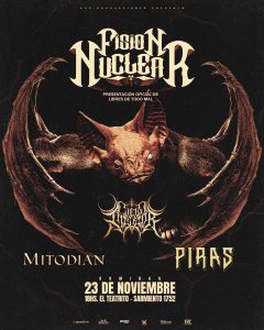 Fision Nuclear llega el próximo 23 de noviembre a El Teatrito para presentar su segundo álbum de estudio, Libres de Todo Mal. Con Mitodian, Piras y Fuego Interior como bandas invitadas, el anunciado domingo será un cierre de fin de semana puro metal.
