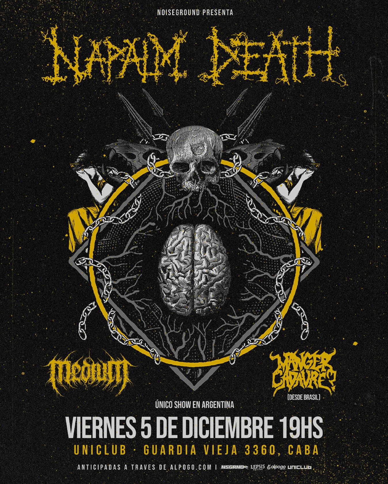 Luego de haber realizado el show más grande de su carrera en Argentina, Napalm Death vuelve para reencontrarse con su público en un recital íntimo y extremo en Uniclub ofreciendo la cercanía y la intensidad que solo un lugar así puede brindar.