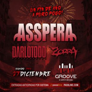 Antes que nada y primero que todo, una aclaración: usar la palabra mierda, sea como adjetivo o no, en un contexto assperiano, es cuanto menos, algo no necesariamente negativo, y en la mayoría de los casos, algo positivo. Aclaración hecha, sí, Asspera puso punto final al 2025, un año de mierda para el pueblo assperiano. La cita tuvo lugar en Groove el sábado 27 de diciembre, y contaron con dos bandas invitadas: Zorra y Darlotodo.