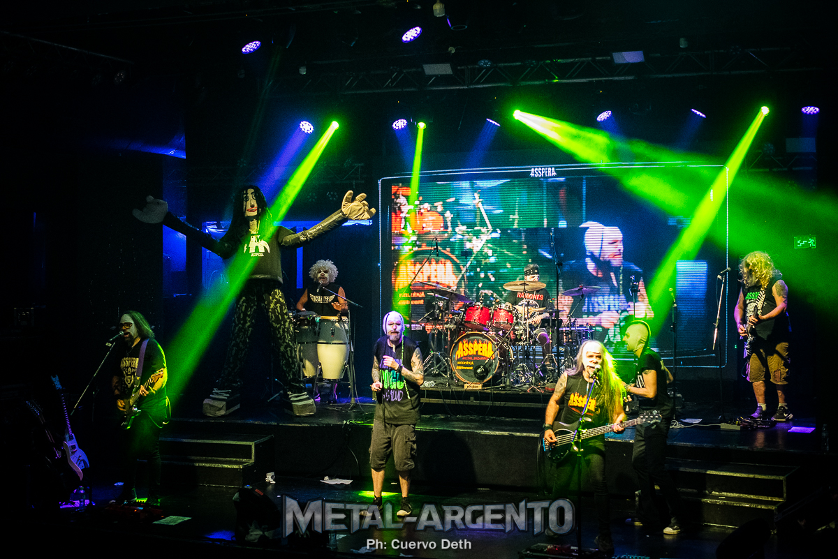 Ya con mucha gente dentro, Asspera daba comienzo al fin de año. Quien conoce a la banda, sabe del poder de creación de clásicos que tienen sus músicos. Con 9 discos publicados, se las siguen ingeniando para componer temas que integran humor bizarro, crítica social, puteadas y todo con gancho, con estribillos cantables y con bases musicales que van desde el thrash y el death hasta el heavy mas clásico y por qué no, blues y rock n roll. Los covers son otro gran pilar para la banda, el último, de su disco mas reciente del 2025 Crónica de una Verga Anunciada, es «Asereje & Pedro», junto a Susanna Asspera a.k.a. Tarja Turunen.