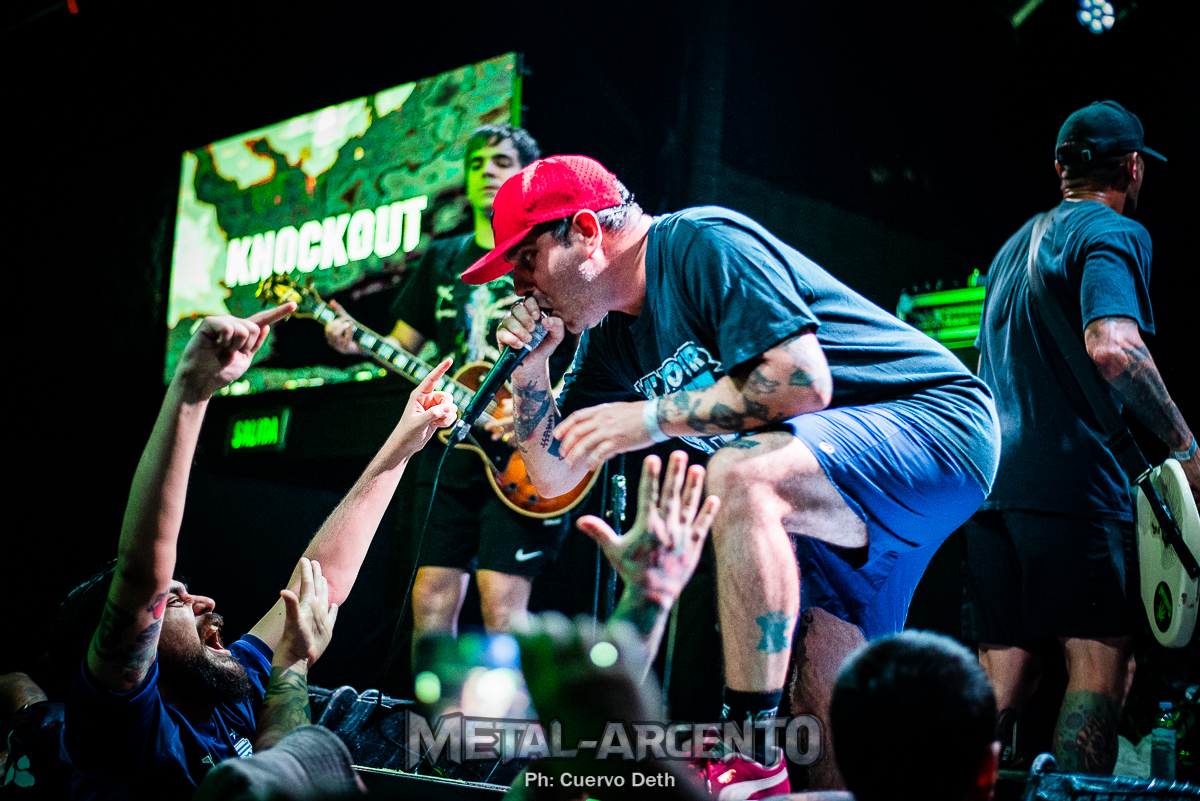 Cuando tuve la oportunidad de ver a Terror en el Teatro de Flores hace 13 años dije que habia sido lo más violento que había visto en los últimos tiempos. Este reencuentro en un local mucho más chico e intimo le arrebato el titulo. “One with the underdogs” sonó y el primer circle pit de la noche se armó. Así como más de una decada abrió el concierto junto a H20 y Madball. Este set fue corto, pero intenso. Un total de 14 canciones. ¿Desde cuándo los shows de hard core no son cortos e intensos? La adrelina corrió en las rondas y los mosh pit mientras «Spit my rage», «Return to Strength» y «Always the Hard Way» musicalizaban. Sin embargo, entre tantas subidas y bajadas, entre tanta gente sobre el escenario; hubo problemas tecnicos. Duró entre 3 y 5 minutos debido a problemas tecnicos. Scott Vogel gritaba «Check Check Check», pero no tenía retorno. Así y todo, nunca paró de invitar a sus seguidores al escenario: «El escenario es de ustedes, vengan cerca, bailen con nosotros». Vogel derrochó energía y carisma, lucio una camiseta deportivo con los colores de Argentina, dejó el microfono en la cara de su público en más de una ocasión, arengo y provocó circle pits/mosh e invitó a que sus fans tomen el escenario.