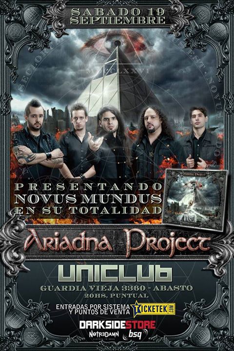 En Uniclub el power metal volvió a sonar firme de la mano de Ariadna Project, la banda integrada por Emmanuel Gerbam en voz, Hernán Vasallo en el teclado, Rodrigo Gudiña en guitarra, Jorge Perini en batería y Alexis Espinosa bajista. Presentando su quinto disco de estudio “Novus Mundus”, que fue mezclado por Timo Tolkki de Stratovarius y masterizado en los estudios Finnvox por Mika Jussila (trabajó con Apocalyptica, Barilari, Avantasia, Children of Bodom, y muchas bandas mas). El disco aún no está físicamente disponible, por eso la banda lo tocó de punta a punta en vivo para el deleite del público.