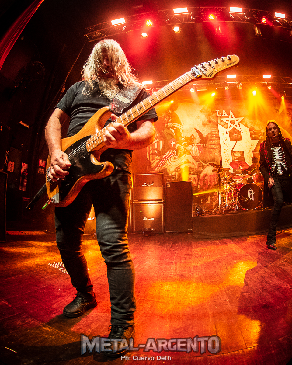 Así como se sospechaba, el set estuvo dividido en dos partes. En primer lugar, sonó de manera integra, con un minimo cambio de orden, el disco en cuestión. Han pasado 35 años, pero la vigencia de Hermetica es impresionante. Porque más allá de rememorar esa primera escucha con auriculares en mi casa, «Robo un auto» sigue siendo un himno de todo aquel que quiere renunciar a las amargas sales de la ciudad capital para nunca volver. «La revancha de America», permanece actual por el constante reclamo de los pueblo originarios. Por su parte, «Atrevesando todo limite» sigue emocionando en multiplicidad de formas a partir de las vivencias e historias de quien escucha y que sin entrar en detalle mientras escribo este texto me detengo, miro para arriba y me repito como mantra que aunque sin vos se ha tornado muy duro no me dejare vencer, no te fallaré. Casi como un espiral, la sociedad argentina no sale de su propio mal. «Gil trabajador» denunció la segunda decada infame de nuestra historia, la decada del 90, y pareciera que fue escrita en estos días con un neoliberalismo recalcitrante y regresor de politicas de estado. Para cerrar este capitulo, y para seguir con el metal como mensaje de resistencia «Vientos de poder» sonó para que las casi cerca de 2000 mil personas canten a viva voz.
