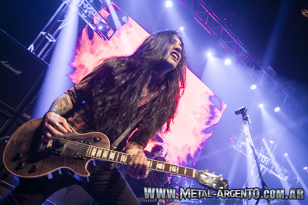 Cuando las agujas marcaban las 21:30 hs se apagaron las luces y comenzó a sonar la introducción que dio paso a toda la furia de la bestia con “Pagando por tu actitud”, aquel tema que abría Naturaleza muerta (2008). Desde el principio el sonido fue muy claro y el público muy enganchado con todas las canciones. El Teatro se hallaba bastante lleno, continuando con la repercusión que tuvo el regreso en el Teatro Vorterix. Luego de haber pedido durante tantos años el regreso de Malón, me incluyo entre los que hoy en día valoramos más el proyecto de su cantante luego de haber permanecido un tiempo en el freezer con un futuro incierto. Es que acá tenemos más que un proyecto solista, sino una banda muy consolidada que sumó mucho con la presencia de dos guitarristas versátiles y de gran nivel como son Iván Iñiguez y Fernando Cosenza, quien regresó al grupo para esta nueva etapa. Además de la fortaleza de Pablo Naydón tras los parches, no podemos dejar de destacar la importancia de Hernán García en el bajo, quién lleva adelante la composición junto a Claudio O’connor desde los inicios de la banda. A Claudio como siempre se lo nota muy suelto sobre el escenario, alternando según la canción su voz natural con aquella voz tan característica que patentó desde los días de Hermética.