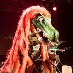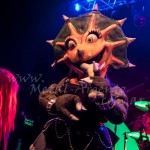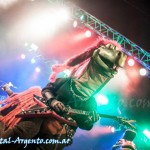 El sábado 1 de febrero fue una de esas tardes donde un recital llama desde muy temprano a un público especial: los niños. Acompañados por sus padres metaleros se aproximaron al Teatro Flores para disfrutar otra de las fechas de Verano Negro pero en esta oportunidad con los Heavysaurios. A las 17.15hs se abrió de repente el telón con “Glotón” (Heavysaurios 2012) con un público tanto padres como niños que no podían esperar mas para escucharlos en vivo, haciendo cuernitos, saltando, cantando junto a Mr Heavysaurio y un excelente solo de guitarra del dragón Riffi Raffi que no paraba de mover su extensa melena violeta. Para después de saludar a los presentes, y seguir con “Patrulla de rescate” (Heavysaurios, al rescate 2013) con los delicados detalles de los teclados de Milli Pilli y los fuertes golpes de Komppi-Momppi en batería, Heavysaurios salió a la carga a toda marcha haciendo temblar el teatro junto a los chicos que no paran de saltar, cantar y mover las diversas banderas extendidas en la valla. Mr. Heavysaurio presenta a la dama mas hermosa de la banda, quien es recibida con halagos y chiflidos, Milli Pilli toma el podio para hacer “Perdida en el bosque” de voz angelical, suave y hermosa, que nos envuelve con su dulce melodía. Mr. Heavysaurio pide a los nenes que griten “Yeahh”, y contó que mientras iban al rescate de Milli Pilli se les rompió la nave espacial pero que encontraron un lugar donde se lo podían arreglar en el “Servicio técnico espacial”. Con cuernitos en alto el show continua con “Barcos vikingos” una melodía de folk con mucho teclado, bajos graves de Muffi Puffi y los potentes golpes de los bombos de Komppi-Momppi.