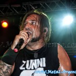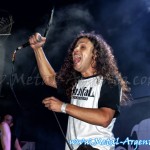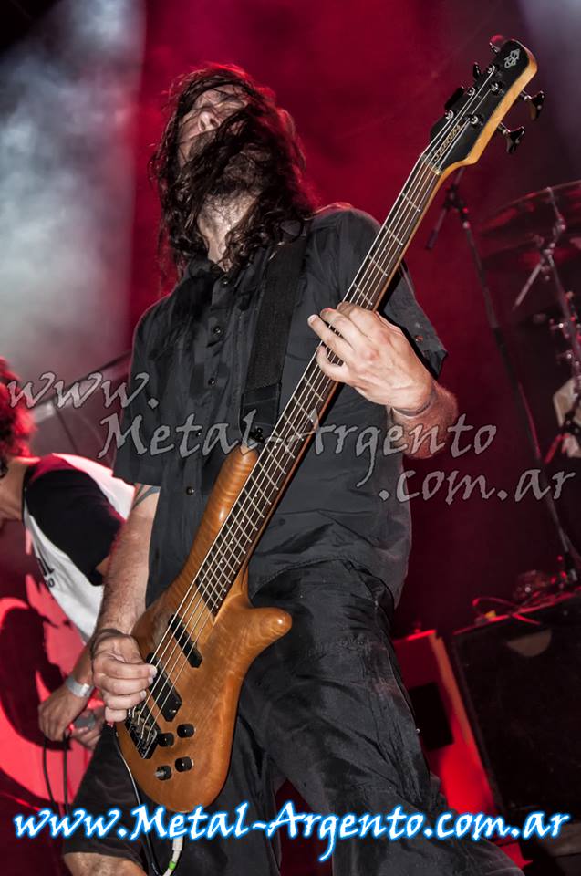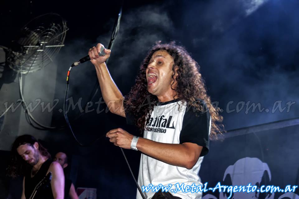 Entre luces tenues con dos gigantografía a los laterales con la imagen del jabalí de Rock Podrido Mastifal se hacía presente en el Teatro de Flores con la voz grave gutural al frente de Miguel Maciel la noche arrancaba con “Puertas y laberintos” (Intermundia 2010) con el rasguido del dúo de guitarras de Diego Conte y Matías Munighini, sumada a la rapidez de los golpes de los bombos de la batería de Mariano Martin marcando los tiempos. Continuando a toda marcha un show imparable de Mastifal a “Ojos de Buey” a puro machaque de violas y bajo de Alex Martin, y como describir esa voz putrefacta de Miguel bien agonizante de película de terror sosteniendo unos guturales perfectos. “Más allá de la razón”, y volviendo a Rock Podrido, nuevo álbum de la banda editado en el 2013, haciendo “Postcruxificción” de Pescado Rabioso. Pero el setlist elegido para la noche fue más volviendo a los clásicos de Mastifal bien pesados y podridos alternando entre Intermundia y Vehemente (2007). Interpretando “Tenaz”, “Desde las tinieblas”, “Síndrome de supremacía” sin poder culminar el show sin antes hacer “Tiempos violentos” cargados de riff donde el público estalla en un pogo inmenso y Miguel muy agradecido con los presentes deseando que estas fechas sigan creciendo junto al metal cerrando con “Bionecrosis”.