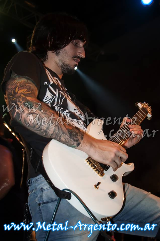 Pegado a ellos se vuelve abrir el telón para dar paso a Bruthal 6 con sus trajes negros largos iniciando con “Despertaré” (Augenblick 2011) de riff fuerte y pesado de la viola de Xavier Agüero sumada a la voz intensa y fuertes gritos guturales de Nazareno Mingone, siguiendo con “Una vez más” y una noche que cada vez se ponía más pesada, en este tema podíamos apreciar la velocidad de la batería de Ezequiel Giménez y sus golpes potentes y precisos a los platillos, con esos toques ligeros de los coros de Silvio Escalante. Sin dar descanso con un doble bombo junto al bajo de Escalante y los guturales graves de Nazareno hacían “Monstruo”, “Y ahora que” con ligeros golpes de platillos es el inicio de una canción con la voz imponente de Nazareno, y un excelente dúo de guitarras de Javier Olmos y solos perfectos del guitarrista líder Xavier Agüero. “Libertad” comenzando con golpes de platillos y guitarra se une en un machaque infernal del bajo de Escalante, y también va cambiando la tonalidad de la voz de Mingone mutando cada vez más podrida e intensa. Pasando a “Aferrado al dolor” y un cover infaltable de Nirvana “Smells like teen spirit” con gritos graves y ese toque personal al tema haciéndolo más pesado tanto en la parte vocal como musical. Y un final particular, bien pesado como amerita el show de Bruthal 6 que fue cada vez más intenso, pesado de puro headbanging a torso descubierto sin poder soportar más el calor Nazareno para interpretar “Fuego” a puro gutural donde demostró todo su caudal pasando por todos los tintes, y una banda que jamás paro de tocar con toda la garra.