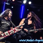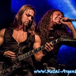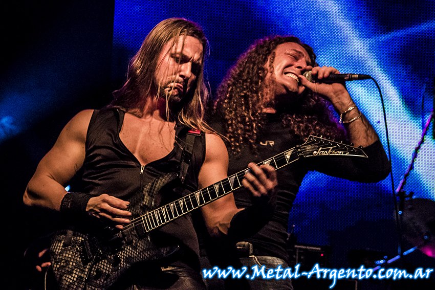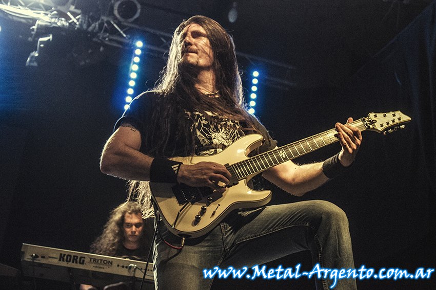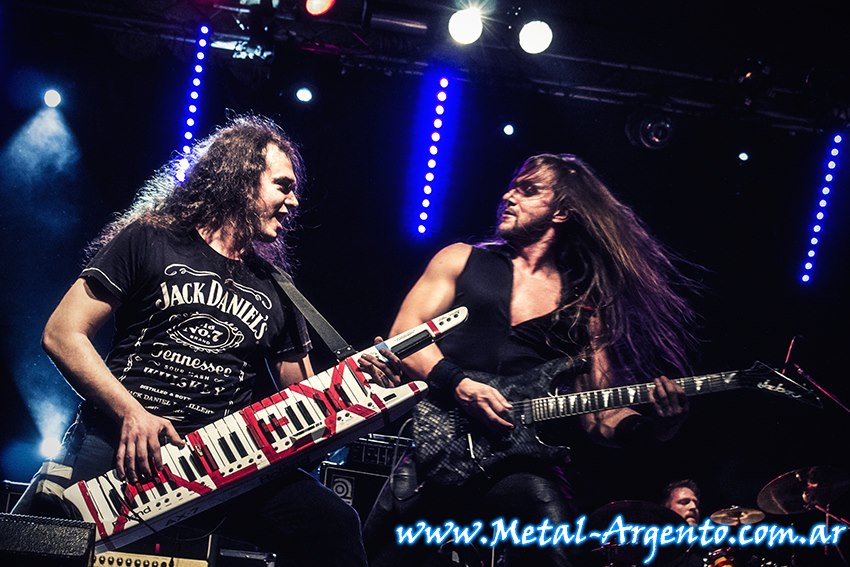 Pasadas las 21hs apareció Vision Divine, ante el escaso público (no más de 200 personas) con dos temas de su reciente placa “Destination set to Nowhere”, estas fueron “The Dream Maker” y “Beyond the sun and Far Away”, cabe destacar la buena onda de parte de todos los músicos, en especial Fabio Lione, quién no paraba de hablar con el público entre tema y tema, siguieron con “The Streets of Laudomia” y “Violet Loneliness “ de su anterior disco, el que presentó nuevamente a Fabio Lione como vocalista de Vision Divine: “9 Degrees west of the Moon”. Acá Fabio aprovechó para agradecer al público argentino, dar muestras de cuanto le gusta estar por estos lados, y aprovechó a decir que el segundo violero, Federico Puleri visitaba Sudamérica por primera vez, (la primera guitarra está a cargo del híper talentoso compositor Olaf Thorsen). Pasado esto, siguieron con “Colors of my World” de su tercer disco “Stream of Consciousness”, “Of Light and Darkness” de su primer disco, y retornaron al material nuevo con la emotiva/medio tiempo “Message to Home”, “Mermaids from their Moons” y “The Lighthouse”, luego pasó “Taste of a Goodbye” del disco “Send Me an Angel” mientras los músicos cambiaban constantemente de posiciones dentro del escenario, principalmente, Alessio Lucatti que pasaba de su teclado fijo a un Keytar que tenía escrito un “Alex” de manera muy sutil (con cinta aisladora roja) y Andrea Torricini (bajo) a quienes supongo envidiaba desde su puesto fijo, el baterista Alessandro Bissa, quién solo demostraba lo bien que se desenvuelve tras los parches en una agrupación que requiere de músicos muy aplicados. Acá viene algo que según me comentaron se venía dando desde la tarde cuando los músicos salieron del recinto luego de la prueba de sonido para encontrarse con sus fans, querían que el público mismo eligiera los covers que interpretarían, y el primero de estos fue “Wasted Years” de Iron Maiden en una versión muy correcta y respetuosa de la original. “The Miracle” le dio paso al segundo y último cover de la noche, “Gutter Ballet” de Savatage y previo al encore ejecutaron “The house of the Angels”.