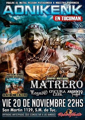 Luego subieron los chicos de Matrero quienes son uno de los grupos de renombre del under tucumano, sus influencias más evidentes son V8 y Almafuerte. Su show se concentró en repasar toda su discografía que va desde “Reflejo de un Sentir” (2005) a “Para quien busque Identidad” (2009), incluso tuvieron tiempo para regalarnos canciones novedosas próximas a salir en una nueva placa. Como si esto fuera poco Daniel Carrasco de Aonikenk como invitado fue de la partida para cantar una canción junto a los locales. Matrero dejó en evidencia su coraje y potencia tanto en lo musical como en lo lirico.