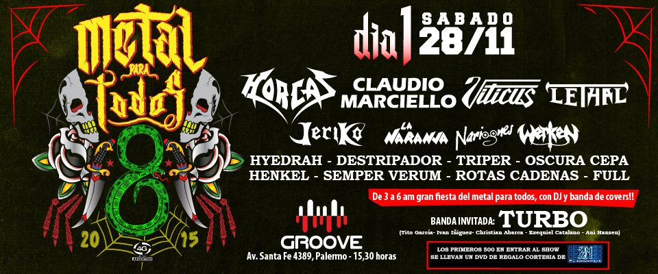 El Metal Para Todos tuvo su octava edición en el boliche porteño Groove. Con más de 20 bandas en escena, el festival comenzó por la tarde para terminar a las altas horas de la madrugada.