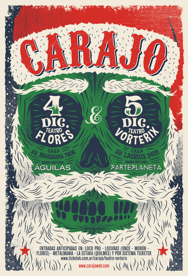 Carajo despidió el año en capital con una fecha doble, como ya nos viene acostumbrando. En esta ocasión asistimos al primer día que se realizó el viernes 4 de Diciembre en el Teatro Flores, donde contó con Águilas como banda invitada.
