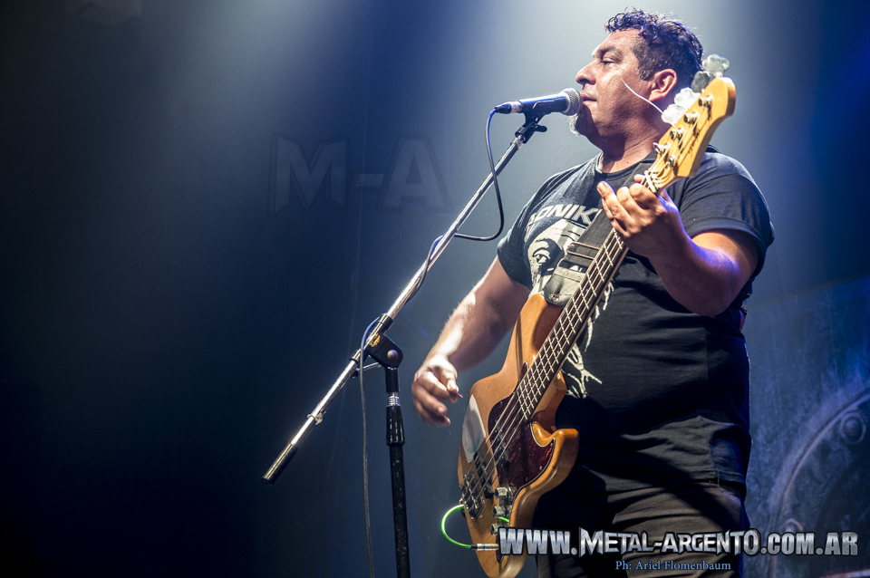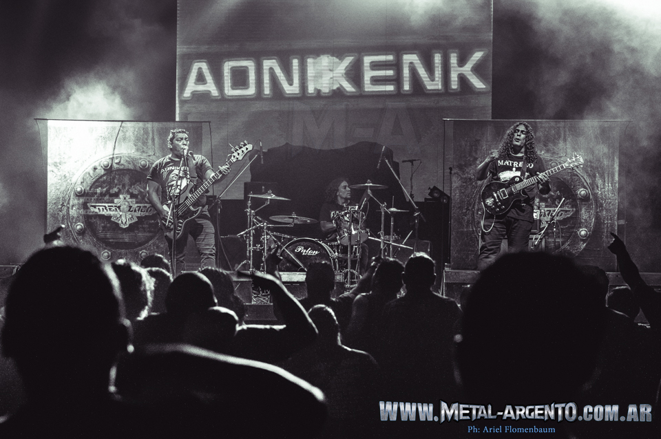La jornada pesada tuvó su arranque temprano. Si bien el evento se centró en la celebración de los 20 años de No Me Importa (1995) más el cierre de la gira de sus 25 años de trayectoria, bandas invitadas estuvieron a cargo de precalentar la noche. Temprano sonaron Roascio y Voltios. Después llego el turno de Aoniken. La banda patagónica Daniel Carrasco (Bajo y Voz) Juanchy Basualto (Bateria) y Ariel Basualto (Guitarra) nacieron, también, hace 25 años. La banda es metal argentino. Ese impronta dura y de tierra adentro, que nos remite a Ricardo Iorio, o ¿Será qué Iorio nos remite a Aoniken? «De mi pensar» fue uno de sus temas mas festejados, aunque el Teatro se encontraba con poca presencia de seguidores de remeras negras.