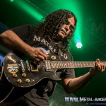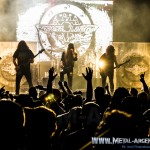 Para el final guardaron «Pueblo Motoquero» y «Cuatro vientos», los temas mas cercanos a la actualidad de la banda, el primero de Venas de Acero (2008) y el otro de Vieja Escuela (2014) para cerrar con el clásico «Tempestades». Asi de pronto pisando las 23 hs, un saludo final a los presentes fue dado, para luego esperar la foto final con los puños en alto y que se cierre el telón.