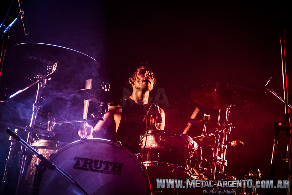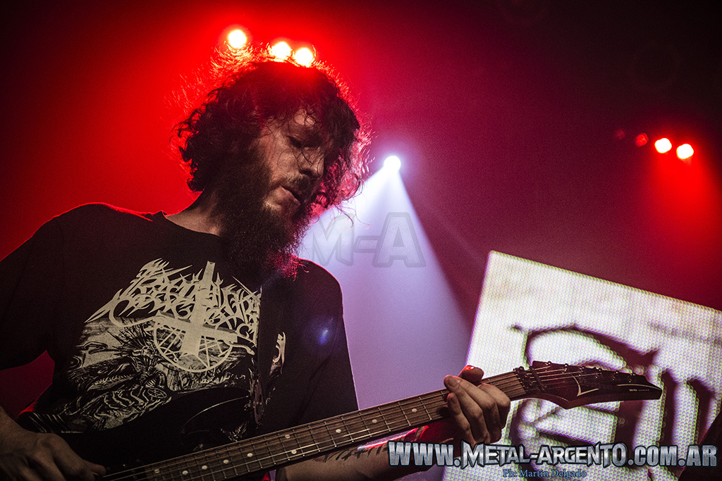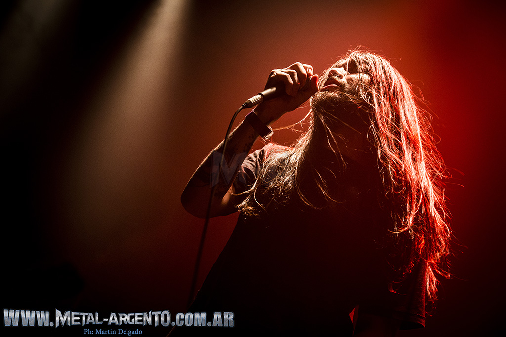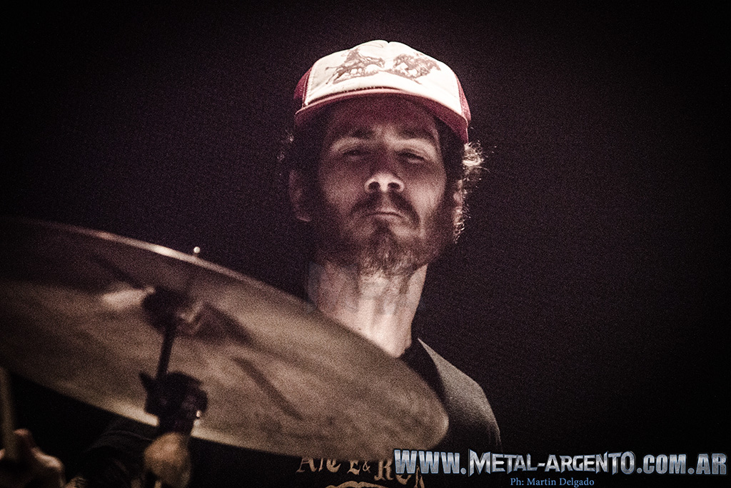 Eran las 19.30 hs y algunos ya se iban acercando a Niceto Vega. Algunos de ellos para adquirir entrada en la boleteria, otros para refrescarse en los locales aledaños con etil a elección. Una hora después la fecha dió inició con la música de Montañas sonando desde el escenario. La banda esta conformada por Diega (voz), Ramiro Suarez (guitarra), Emiliano Paravisi (batería) y Andrés Villanueva (bajo) y recorren un subgénero del metal llamado slugde. El crecimiento de Montañas, tanto a nivel sonido, como pararse en el escenario y hasta mismo en la ejecución de sus instrumentos en tan solo un año, es para prevenir a aquellos que buscan una banda fresca. No por nada estuvieron bajo la pluma y el lento de varios medios especializados. Temas simples, concretos. Nada de fuera de lugar. Por momentos rápidos como en «Corriendo con lobos» y «Hijo de la Tormenta». Por momentos con tinten doom, por ejemplo en «Atávico» y «Ennio». Precisamente, la combinación de velocidades estuvo en una canción ajena a ellos. Una banda rápida como Ramones. Un tema preciso como Commando. La cuota de sludge justa de Montañas.
