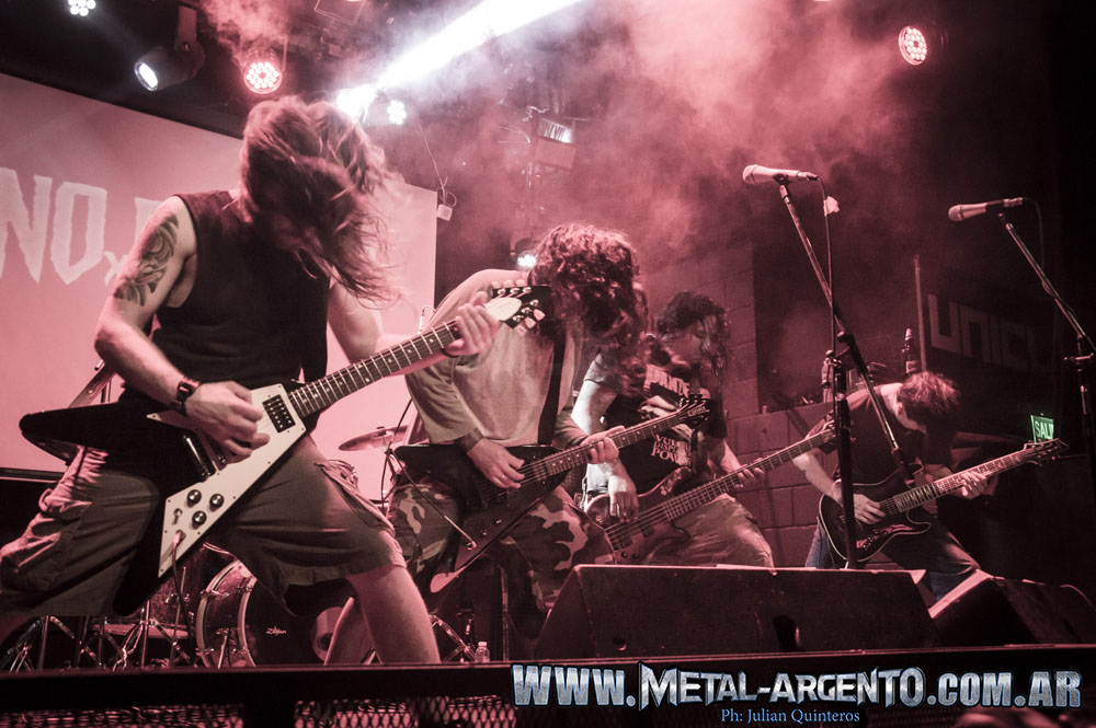En el último asalto de la noche salió No Guerra para terminar de kokear a los presentes. Después de festejar sus diez años en el Salón Pueyrredon un golpe bajo fue recibido por banda. Hugo, El Gringo, partió al otro mundo y la banda lo recordó durante todo el repertorio. Tan fiel como su apoyo en cada recital. En su honor sonó «No se puede olvidar». No Guerra, con tres guitarras bajo su poder, y una voz poderosa como la de Jair retumbo de principio a fin el Uniclub de la mano de «Weychan», «Somos fuertes, somos mas» y «Desorden Natural» hasta casi la medianoche. Llegado el final, abruptamente las luces del local fueron encendidas, y el desalojo fue prematuro. Ya en la calle, los saludos entres las huestes tuvieron su momento.