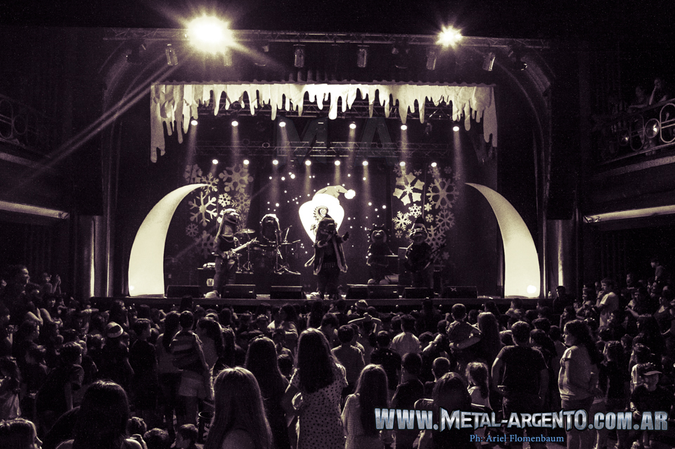 Una vez más, con la excusa de festejar navidad los Heavysaurios llenaron el Teatro Vorterix. Si bien la banda fue pensada para satisfacer las necesidades metaleras de los más chicos, ninguno de los mayores que los acompañó se sintió demás. Estos dinosaurios hacen que el niño interior que todos llevamos dentro salga y agite la cabeza.