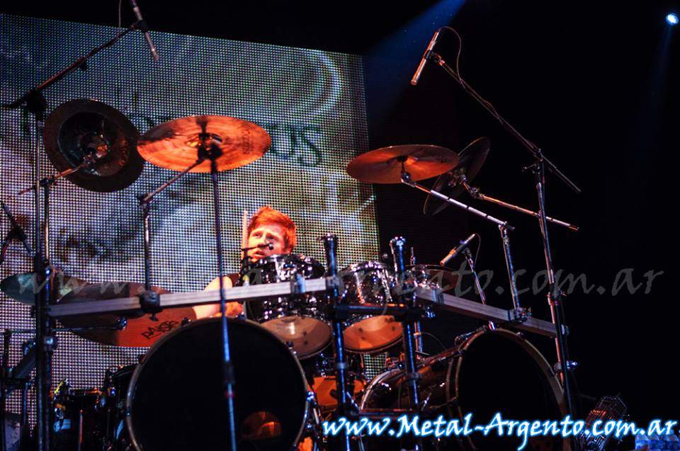 La gente empezó a corear el nombre de la banda y Kotipelto encaró el micrófono para saludar a toda la monada que no dejaba de cantar “strato, strato”. Allí el cantante aprovechó para presentar al batero de la banda y hablar su nuevo disco, siguiendo la noche así con “Halcyon days” perteneciente al ya mencionado trabajo de estudio. El show había comenzado a un horario no habitual para un día de semana, así que tal vez eso apresuró las cosas y pasaron “Eternity” y “Dragons”, dando lugar a Rolf para que regale un buen solo de batería mostrando así su carta de presentación ante todo el público argento. A continuación dijo presente “Eagleheart”, un clásico de la banda, seguido por “Fantasy” (tema compuesto por Lauri) y por último otro clásico como “Destiny”.
