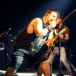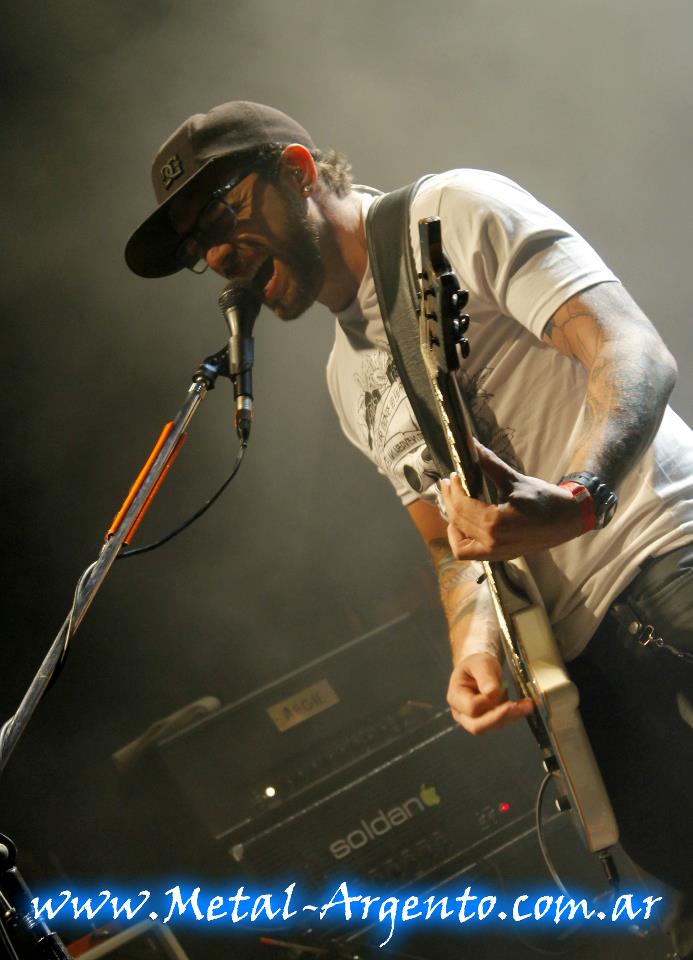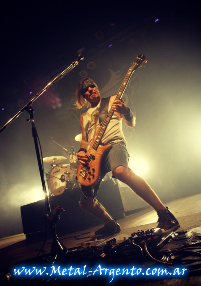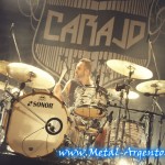 A pocos minutos que salga Carajo a escena no se podía caminar por El Teatro ya que está repleto de vagos, carajeras y familias. En el momento que se apagaron las luces el agite se hace notar y la intro de su última placa discografía El mar de las almas (2010) sonó para que siga con “Acido” al igual que el orden del cd, increíble como el sonido de la banda quedo tapado por el público y esto se notara aún más cuando de forma seguida continúen el set con “Joder”. El show sigue con “Luna herida” en donde sufren problemas de sonido y que es arreglado rápidamente, “Chico granada”, “Atrapasueños”, “Pura vida” e “Ironía” fueron los temas que siguieron. Me atrevo a afirmar que de las bandas actuales y de la nueva generación del rock Carajo es la banda que mejor suena en vivo y esto sorprende más aun siendo que son un power trío, fusionando rock, punk, grunge, hardcore y el metal de los noventa. Tery está armado con una buena pedalera que hace sonar a su guitarra como si fueran mínimo cuatro, Corvax con su actitud, sumándole su humildad y respeto de siempre, y Andy que es sin duda el mejor baterista de su generación.