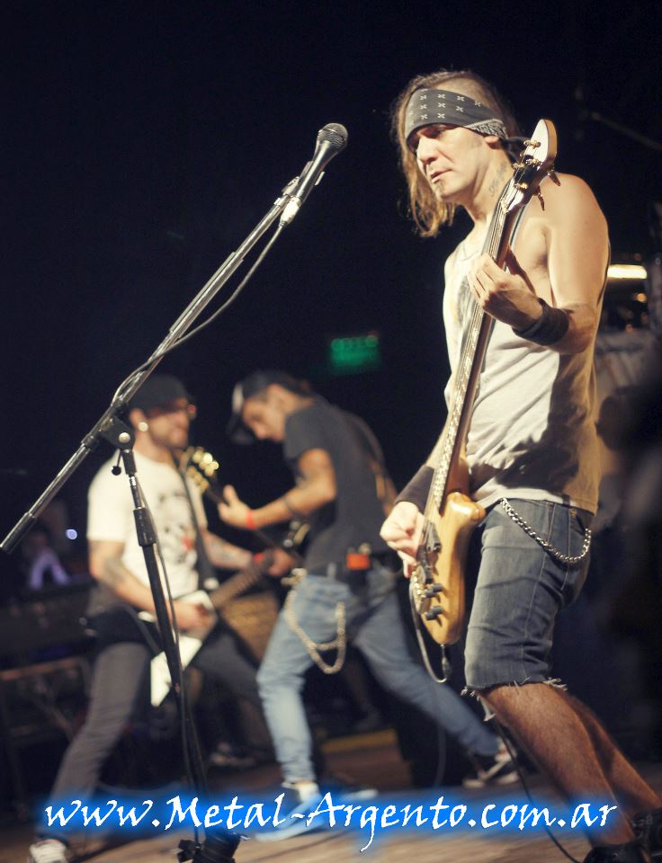 Es llamado a escena un amigo de la casa para que su sume a las guitarras para un nuevo cover que en este caso es de Iggy Pop, “Little Know it all”. Lo que se está viviendo es una locura, gente saltando para todos lados, mosh agite, los típicos cantos dedicados a la banda, sudor, calor y golpes y todo esto se calmara ya que Tery dedica el próximo tema a su familia, “Triste” que será continuado con “Libres” con Facu el mágico acompañando en las guitarras. Se prenden las luces para la preparación de bises en Flores, que habrá durado unos siete minutos y cuando la banda vuelve a las tablas anunciaron que solo se escucharían covers y para eso llaman nuevamente a Knario para que haga dos clásicos del metal, el primero “Sad but True” del álbum negro de Metallica (1991) y continuo sonó “Ace of spades” de Motörhead (1980). Para el próximo tema la banda haría cumplir un sueño a todo carajero, ofrecen la oportunidad que alguien del público suba a cantar “You shook me all night long” de los australianos AC/DC del disco Black in Black (1980). Muchos dicen que la tercera es la vencida y así fue, dos participantes pasaron y no cumplieron los requisitos pero el tercero subió y la rompió tomo el control total del escenario. Como último cover sonó “A donde está la libertad” del CD Pappo’s Blues Volumen I (1971) en homenaje al cumpleaños del Carpo. Finalmente cerraron con su clásico “Sacate la mierda” de su primer disco del año 2002, y todos los invitados irrumpieron el escenario para cantar todos juntos. A pesar de que faltaron dos temas infaltables a mi parecer como “El vago” y “Salvaje” fue un excelente show y una verdadera fiesta con buenas noticias como la firma de autógrafo a fin de mes, la presentación de la reedición de su primer disco y que van hacer soporte de A Perfect Circle el próximo dos de abril en el Malvinas.