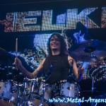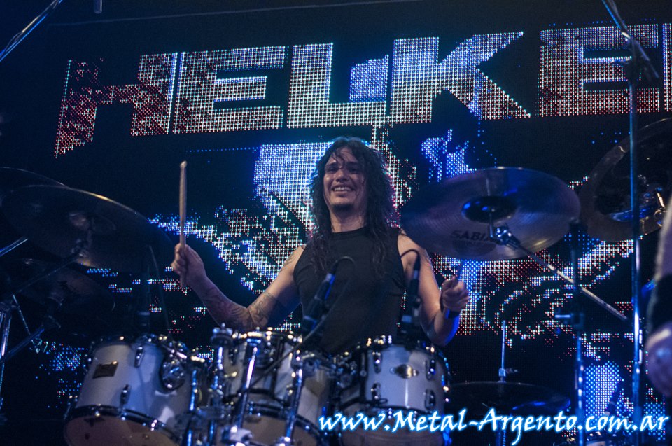 Luego de los preparativos habituales de todo concierto, comenzó a sonar una intro de fondo para que Helker haga su aparición de a poco, encabezada por Hernán Coronel que salió con los brazos extendidos y sus baquetas en mano, para recibir a una buena cantidad de gente que los fue a ver. El primer tema de la noche fue “Redención” perteneciente al último disco y que tiene un video oficial al igual que su versión en inglés. Haciendo un paso por su disco A.D.N. (2010) se encargaron de tocar “Viento y fuego”, y vaya que era oportuno, ya que el calor se hacía sentir en un lugar que tuvo localidades agotadas. Continuando con el pasado se fueron hasta Resistir (2008) para tocar el tercer tema “Contra la corriente”, mostrando por qué un sello alemán puso sus fichas para producir a la banda, que nunca habían tenido tal experiencia. Todo sigue intacto y Helker sigue sonando como Helker, apostando todas sus fuerzas para regalar sus canciones. Como dijo Valdez (que está recuperado de su enfermedad y eso le permitió moverse por el escenario) en la conferencia “Helker es una banda de fanáticos del metal” y eso se nota de principio a fin.