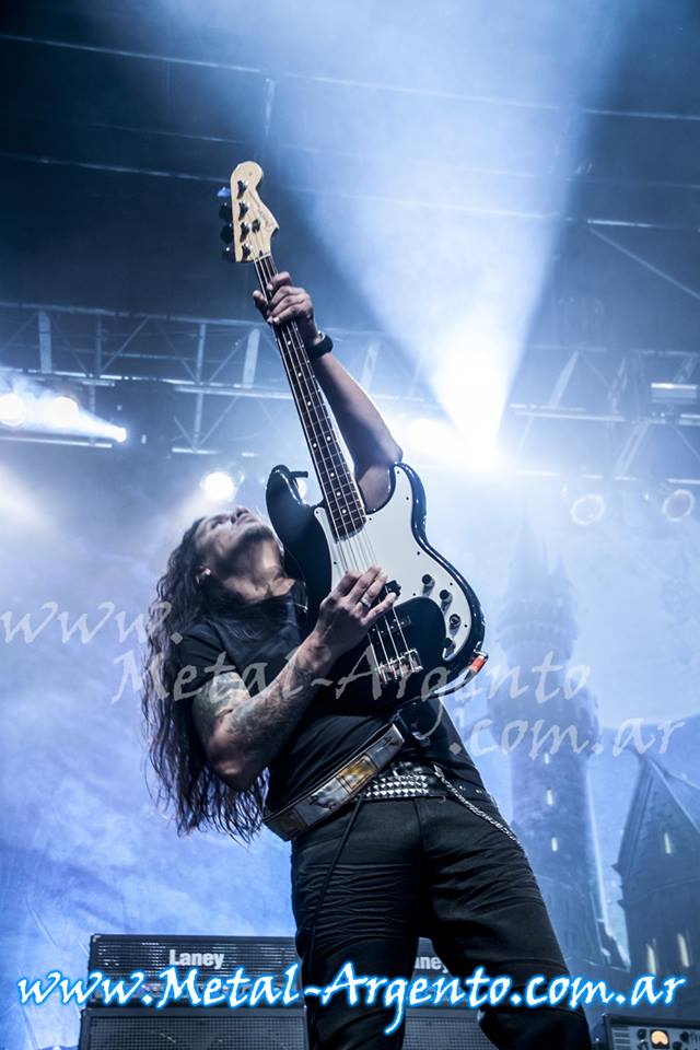 Con un estadio repleto de punta a punta y con todas las generaciones que enardecían por igual, presenciaríamos el primer cambio dando paso a Adrián Barilari en la voz, ovacionado por un público muy acostumbrado a su presencia para arrancar con El libro Oculto, cuarto disco de Rata editado en 1993 comenzando en orden por “Basura”, “Asesinos”, “Cuarto poder”, “Lejos de casa”, “Agord, La bruja”. Ahora haríamos el último cambio de la noche dejando ir a Rowek y Berdichevsky para dar la bienvenida a Fernando Scarcella en batería, encontrándonos ante la formación actual, y más conocida de Rata por las nuevas generaciones. Giardino comenzaría con el aclamado riffs ya conocido por todos de “El Reino del Olvido” y con todos los rateros saltando sin descansar continuaba la fiesta, siguiendo con un setlist muy variado que nos harían recorrer de manera aleatoria distintos discos pasando por “En nombre de Dios” del disco El Camino del Fuego, “71/06 Endorfina” del disco El Reino del Olvido, volviendo al disco El Camino del Fuego a “Lluvia Púrpura”.