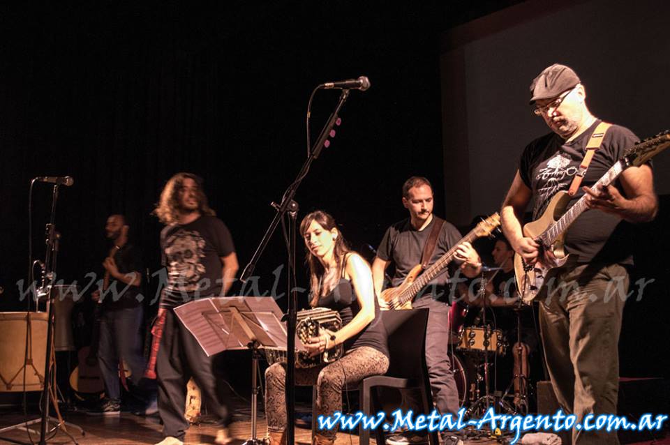 Y una vez más nos acercamos a ver a nuestros «apadrinados», una de las bandas que más nos despertó la atención en mucho tiempo, los chicos de Arraigo. Para quienes no los conocen, se auto-definen como Metal Folclórico Latinoamericano. Banda que desde un EP que salió allá por el 2006, nos cautivó con unos pocos temas plagados de mixturas folklóricas, metal, zamba, tango y oscuridad. Nos obligamos a perseguir su huella e indagar sobre el estado actual de la banda por mucho tiempo. Hace aproximadamente dos años, para nuestra satisfacción, volvimos a ver muchísima actividad de la banda, comenzando a tocar cada vez más seguido y llegando al fin a editar su primer disco en el 2012: Fronteras y Horizontes. Disco que presentaban esta noche fría del 18 de Mayo, donde el recinto estuvo a la altura completamente. Un teatro, con todas las letras: Butacas, acústica excelente, y una perfecta visión y sonido desde cualquier lugar. Un lugar completamente desconocido para muchos: Auditorio Kraft (En el subsuelo de Florida 681), pero que tuvo un marco muy bueno: Comodidad y buen sonido.