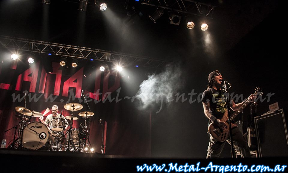 Corrida de telón, luces encendidas y Carajo salió a escena con “Resistiendo con ideas” para explotar la euforia de todos continuando con el siempre festejado “Sácate la mierda”. La primera parte de la lista de temas fue el disco en su orden original y casi hecho de seguidilla, sin respiro, en otras palabras de una forma ramonera. Las canciones más aclamadas por la vagancia, como llama Corvata a los fans de su banda, fueron “Salvaje”, “Ironía” y “Conquistador”. Fue impactante poder escuchar en vivo temas como “La guerra y la paz” o “Estilo de vida” ya que son temas que no son parte del típico set de la banda, más que nada el segundo. Finalmente se apagaron las luces para que quede de fondo el outro del cd, así los músicos pudieron tomar un merecido descanso por la energía derramada más que nada por Andy donde se lo vio concentradísimo en los tiempos y la potencia de los golpes en su batería. Hasta el momento el sonido increíble como la calidad que tiene la remasterización, con una puesta en escena de luces muy buena y esto no iba a bajar el nivel en el segundo tramo de la noche.