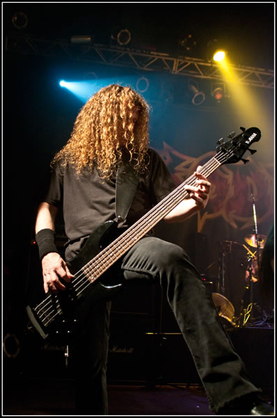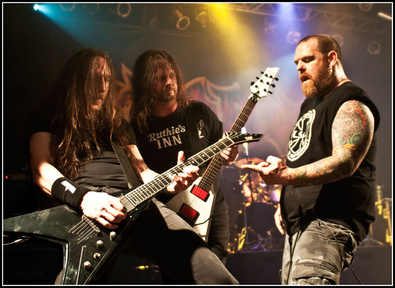 En un momento Rob dijo algo de un DVD pero no llegué a entender porque justo estaba comentando con un amigo lo bueno del show, pero a partir desde entonces grabaron todos los temas siguientes. Había una cámara en un soporte que era manejada por Rob a la vez que cantaba, y a veces se filmaba el mismo cantando. También, hacia sus pasadas por las guitarras y la batería, y ni hablar del público, todo estaba registrado en esa cámara y en otra que había atrás de Tom. Los temas siguientes fueron “A lesson in violence” y “Brain dead”, para formar un encore de cuatro temas finales. El primero fue uno de los más aclamados: “Bonded by blood” destrozaba el teatro solamente con la intro, porque el clima que se vivía era letal. Un circle pit que ocupaba casi el ancho del teatro liquidaba a todo aquel que se metía dentro, y no era para menos ya que Duke era quien lo pedía. Al terminar, el pelado hizo de las suyas con un grito estremecedor para presentar “War is my shephred”. Últimos tres temas finales donde pasó de todo: tocaron “The toxic waltz”, “Strike of the beast” y “Good ridance”, un fan se subió al escenario y abrazado a Rob cantó un poco, después reverencia hacia Holt y se bajó. Siguieron los circle pits y a lo último un wall of death comandado por Duke. Tampoco falto el “Argentina es el mejor público que he visto, muchas gracias” y también el canto de “ole ole ole Exodus” con la banda tocando y el pelado cantando junto a la gente. El show termino alrededor de las 23:15, una hora cuarenta y cinco minutos de un show excelente. Músicos geniales, público fiel, excelente lista, muy buen sonido y mucha química entre la banda y la gente. Así pasó Exodus por Argentina dejando un grato recuerdo a todos, quienes esperamos que este quinteto demoledor regrese cuanto antes.