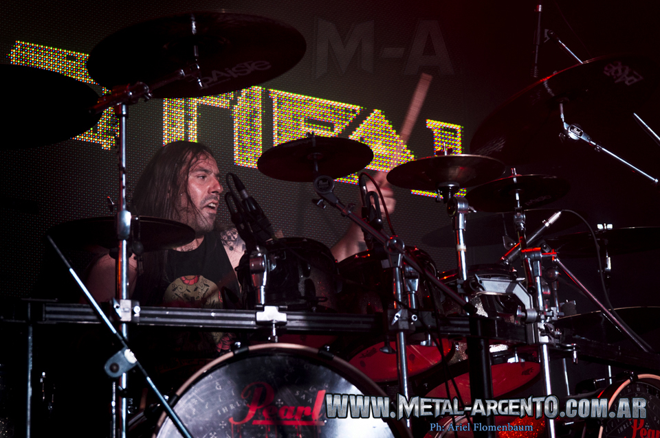Finalmente, sin hacerse esperar demasiado, cuando el reloj marcaba las 21:45 hs aproximadamente salió a escena Mastifal. El Roxy es un escenario que sin duda alguna les sienta muy bien y permite vislumbrar claramente lo bien que suena la banda y los grandes músicos que integran esta máquina brutal: Diego Conte y Matías Munighinni (guitarras), Miguel Maciel (voz), Alex Martin (bajo) y Mariano Martin (batería). Como un paréntesis pero digno de destacar, es la buena actitud de varios de sus músicos que estuvieron presenciando los shows de las bandas anteriores, algo que es lo ideal pero que no siempre sucede.