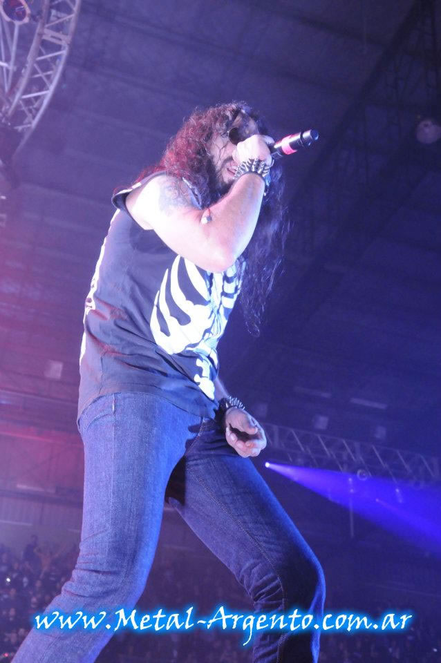 La noche comenzaba con “Malón mestizo” al igual que en su vuelta no oficial tocando junto a Megadeth. La gente estalló inmediatamente acompañados de un conjunto de luces y flashes como hacía mucho que no se veía. El sonido fue regular a lo primero, pero después fue mejorando claramente y hasta lo subieron un poco casi a la mitad del concierto. El campo estaba abarrotado de gente que se apretujaba contra todos los lados del escenario e incluso con los corralitos donde estaban las cámaras (para los desprevenidos, recordar que el show fue grabado para la edición de un futuro DVD). Karlos, Claudio y el “Tano” recorrían todo el escenario, se paraban en cualquiera de los extremos de la letra X formada, daban vueltas por el círculo, iban a la pasarela y a veces se ponían al lado del “Pato” (muy buena vista de atrás cuando la plataforma giraba y se podía ver cómo le daba al doble bombo con toda la furia y todo el movimiento de brazos). Así pasó el primer tema y luego siguieron con “Castigador por herencia” para tocar uno de los temas que no habían hecho hasta ahora. De toda la discografía de Malón, sólo faltaba tocar “Mendigos” (que fue el que tocaron) “La fábula del avestruz y el jabalí”, “Revolución nacional” y “El gran pozo criollo”. La verdad que fue muy bueno ver este tema en vivo, es una gran canción y merecía estar dentro del setlist.