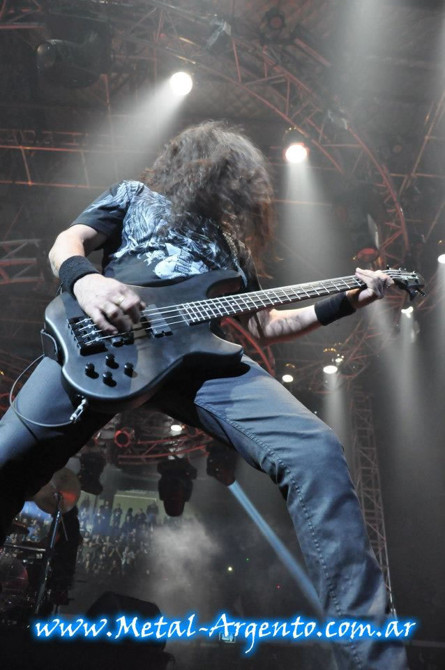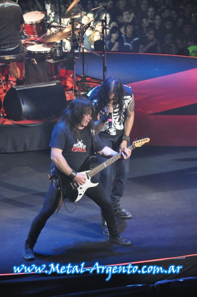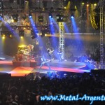 Alrededor de las 21:30hs, las luces se fueron en cierta medida y comenzó a sonar una intro de fondo para que los músicos se hagan presentes sobre la pasarela trasera, recorriendo todo el escenario saludando a la gente mientras que ésta explotaban de júbilo. La energía del público se podía percibir en todo el estadio, era como una conexión entre cada metalero y todo eso era transmitido y enfocado hacia el escenario.