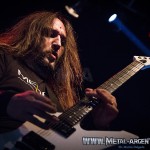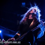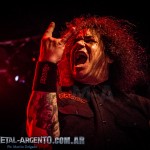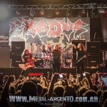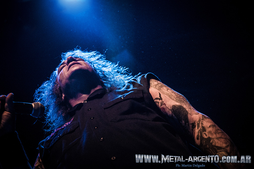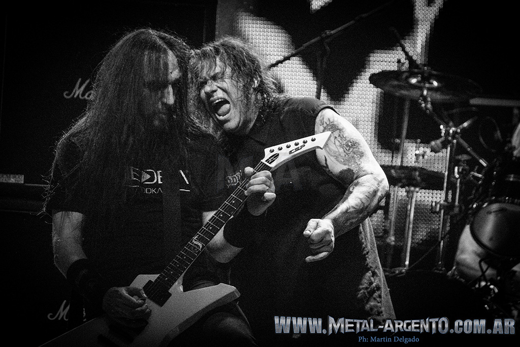 La legendaria banda de la Bay Area comenzó desplegando su maquinaria brutal con el 1-2 que abre su última placa: “Black 13”, inmediatamente seguido de “Blood in, blood out”. El sonido se mostraba fuerte pero claro y conciso, lo que despejó toda duda previa al recordar los problemas de sonido que dejaron un gusto agridulce luego del show de Testament dos meses atrás. “And then there were none”, primer tema ejecutado de su disco más representativo Bonded by Blood (1985), fue coreado por todos los presentes. Continuaron con “Children of a worthless god”, única de la etapa que tuvo a Rob Dukes al frente, y “Deranged”, tema apertura de Pleasures of the flesh (1987). El frontman Zetro Souza es quien se lleva gran parte de la atención gracias a una intensa interacción con el público, al que incita a agitar en las rondas que se forman en cada tema. Pero esta aplanadora del thrash no sería lo que es sino fuera por la poderosa base que forma el bajista Jack Gibson y el baterista Tom Hunting, fundador de la banda junto a Kirk Hammett.